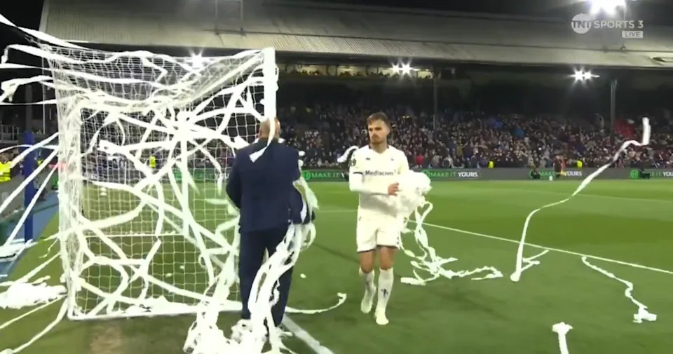 Supporters behind the Holmesdale Road Stand launched reams of toilet roll towards the goal that David De Gea was set to defend for La Viola after the interval.