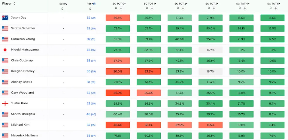 Long, difficult courses are the comps if you’re looking. Which should result in a Major level winner this week. Here are the best players, per round between Augusta, Torrey Pines (South), Riviera, Quail Hollow, and Bay Hill over the past three years.