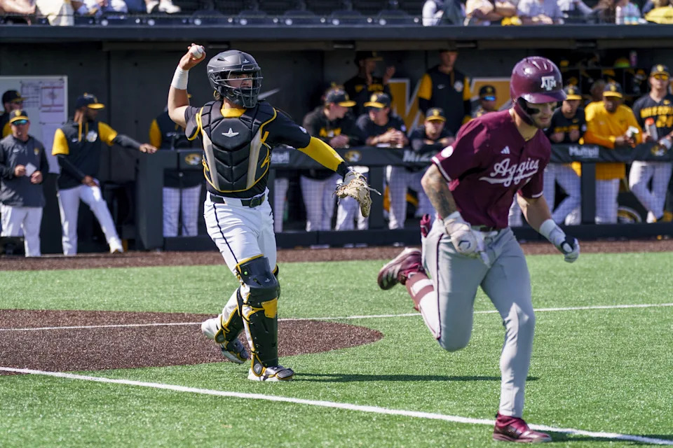 In the top of the third inning, the plastic wrapper of a hot dog was blown onto the field and picked up by the batboy for the Texas A&M Aggies. That drew the biggest cheer of the day from the Mizzou contingent at Taylor Stadium on Sunday who watched the Tigers lose 14-3 in the third straight game where the Aggies took it right to the front door that is the Missouri pitching staff and did so early.