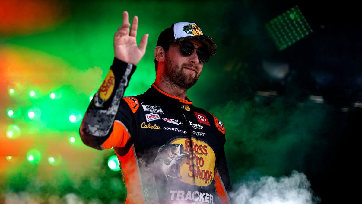 He was still in contention with eight laps to go when he lined up behind Joe Gibbs Racing teammate Christopher Bell on a restart on the ninth caution brought out by Zane Smith’s bizarre crash.
