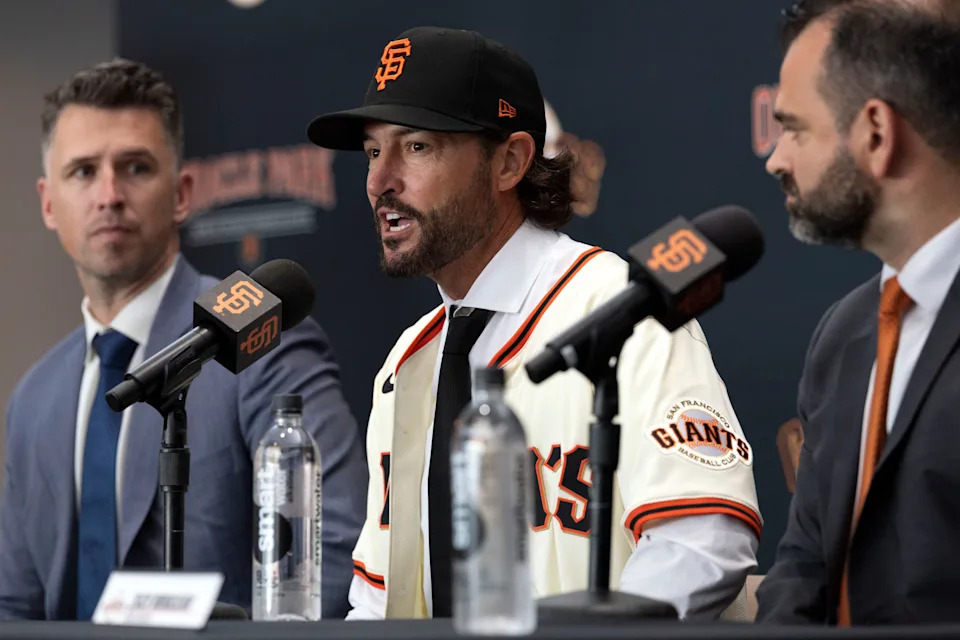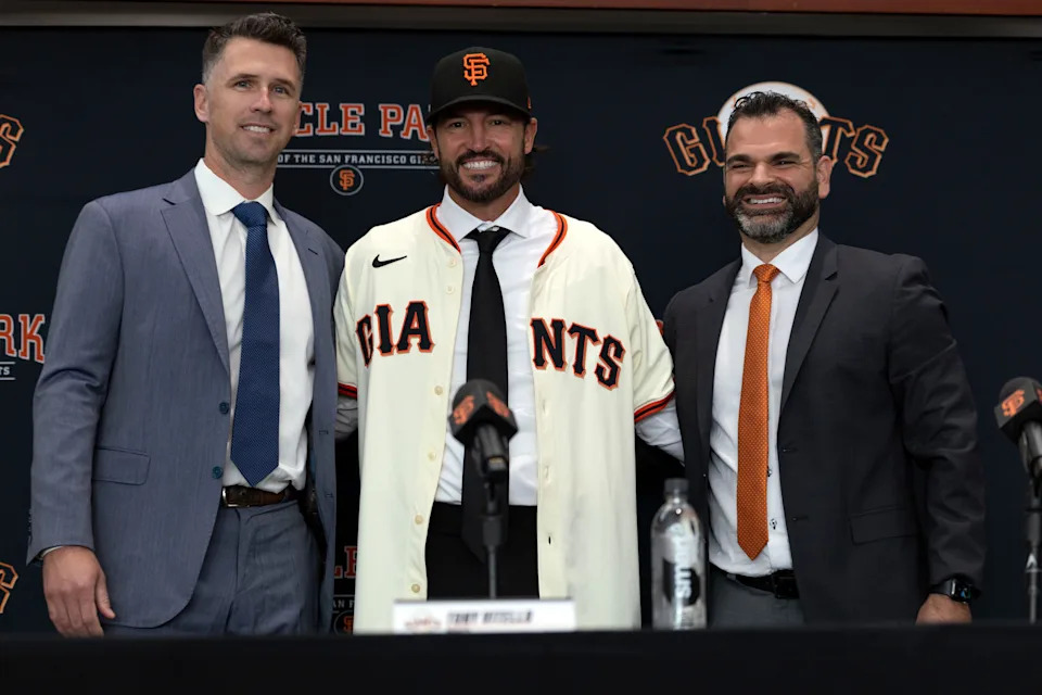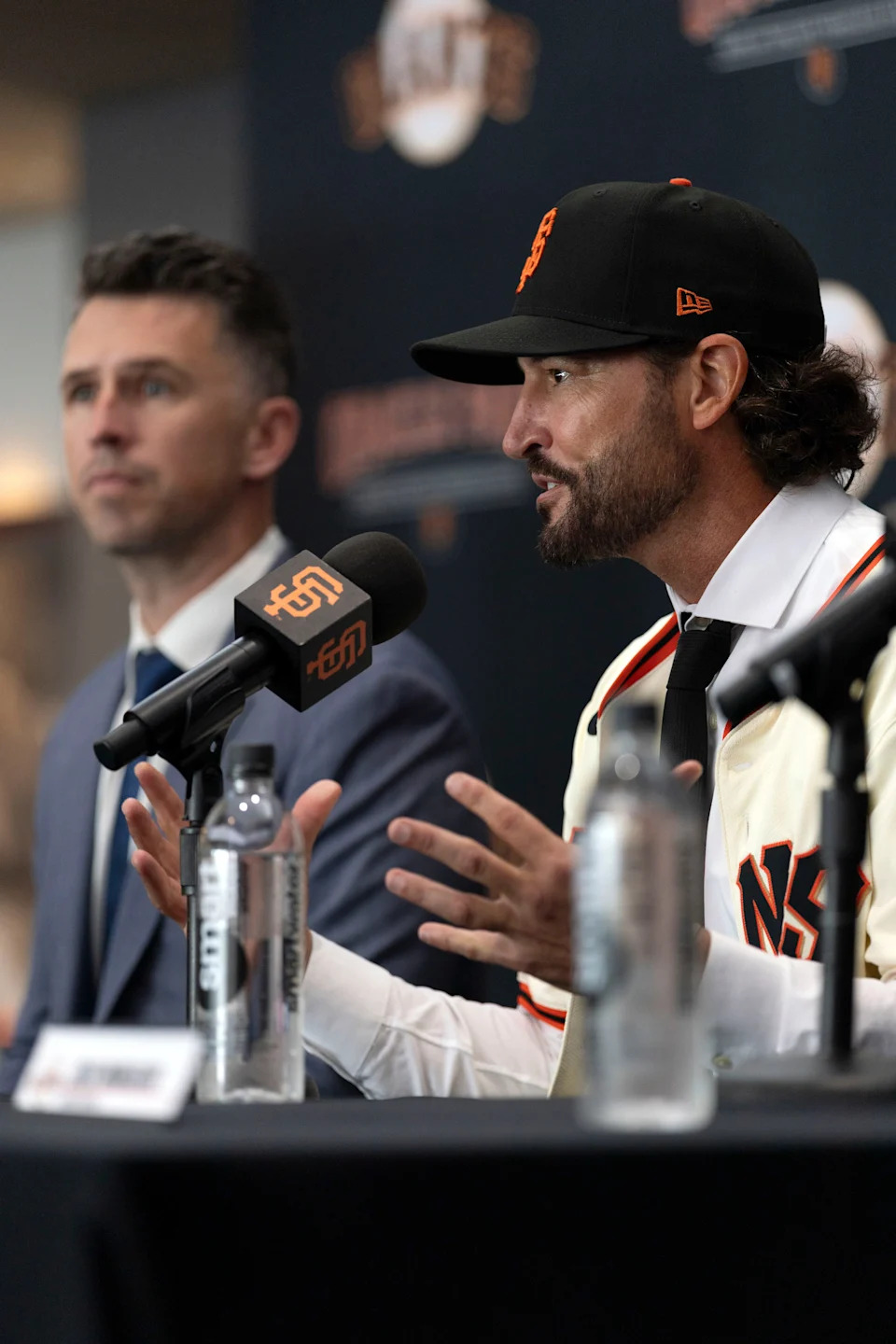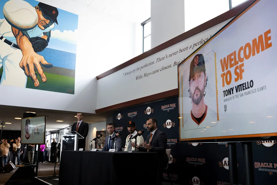 Tony Vitello is introduced as the new manager of the San Francisco Giants at Oracle Park on Oct. 30, 2025.