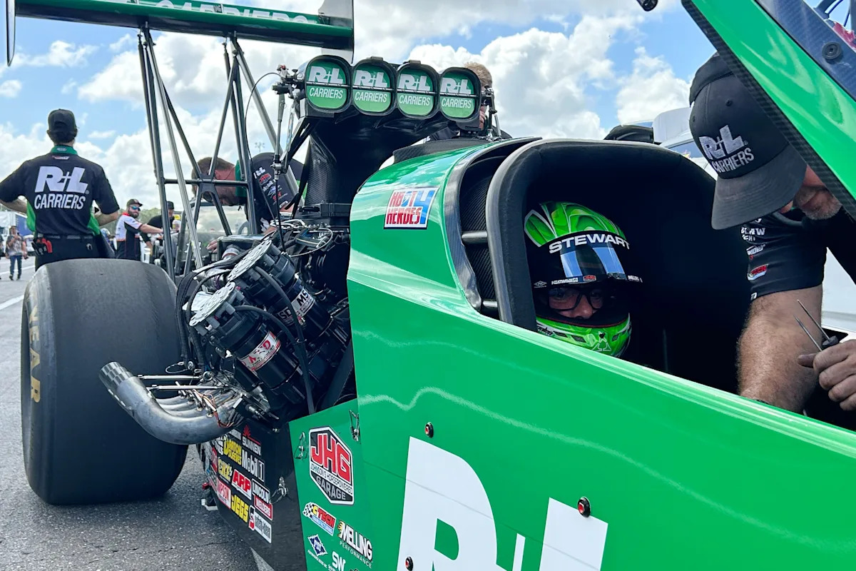 Stewart and Pruett, along with Dom, have spent nearly 40 days in Florida. They tested setups and logged countless passes at drag strips in Bradenton and Gainesville. They traveled to Daytona International Speedway so Stewart could enter his first NASCAR race since 2016; he crashed and finished next to last in the Truck Series opener. They returned to Daytona Beach last weekend for the start of Bike Week.