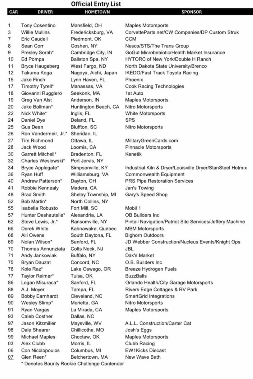 The ARCA field features an impressive 50 entries with 40 cars set to make the field for the 2026 season-opener.