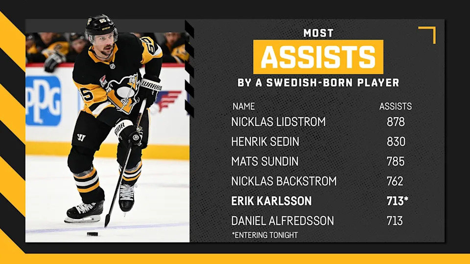 Erik Karlsson’s next assist will push him past his former teammate Daniel Alfredsson for career helpers.