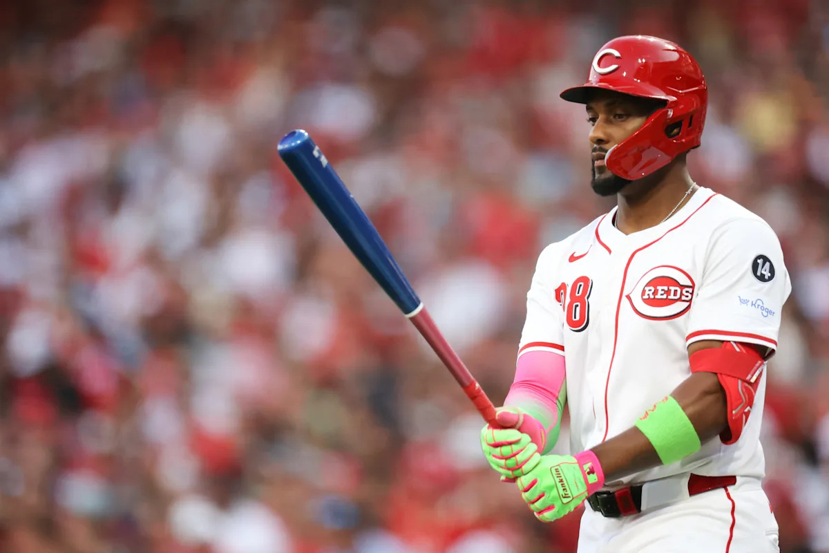 CINCINNATI, OH – AUGUST 16: Miguel Andujar #38 of the Cincinnati Reds during the game between the Milwaukee Brewers and the Cincinnati Reds at Great American Ball Park on Saturday, August 16, 2025 in Cincinnati, Ohio. (Photo by Abdoul Sow/MLB Photos via Getty Images) | MLB Photos via Getty Images