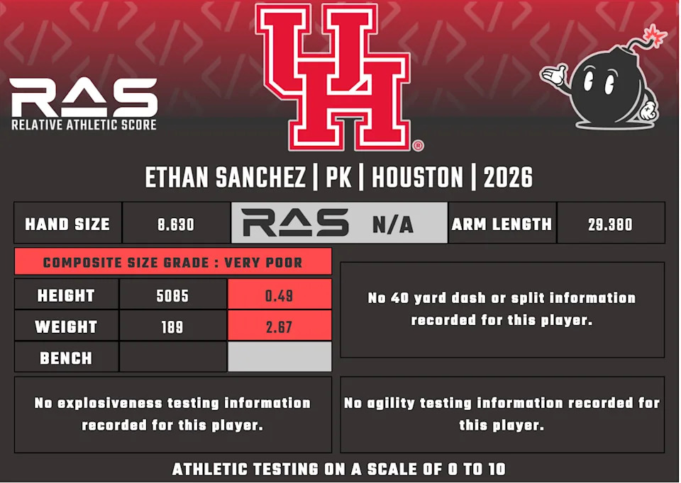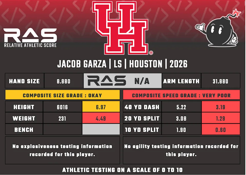 Garza was the other sixth-year senior on Houston’s roster that never transferred, sharing the desigation with Stacy Sneed. The long snapper made his first appearance in 2020 and continued as an integral member of the Cougars’ special teams through 2025, where he was an All-Big 12 Second Team selection.
