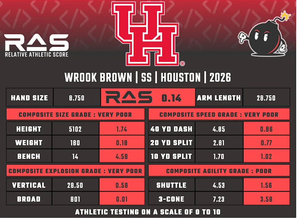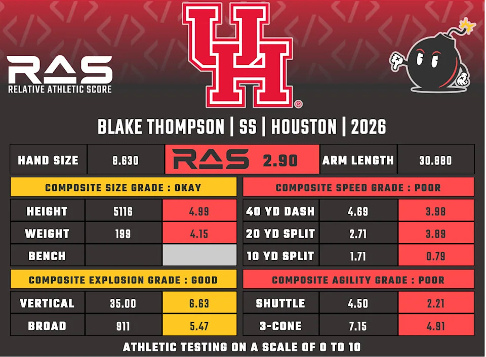 A summary of results are below, including each player’s Relative Athletic Score (RAS) chart. RAS is a metric developed by Kent Lee Platte which grades a player on a scale of 0.00 to 10.00 based on NFL Combine or pro day performance, factoring in size, speed, explosiveness, and agility in relation to other players at a certain position. All historic RAS scores can be found at https://ras.football/.