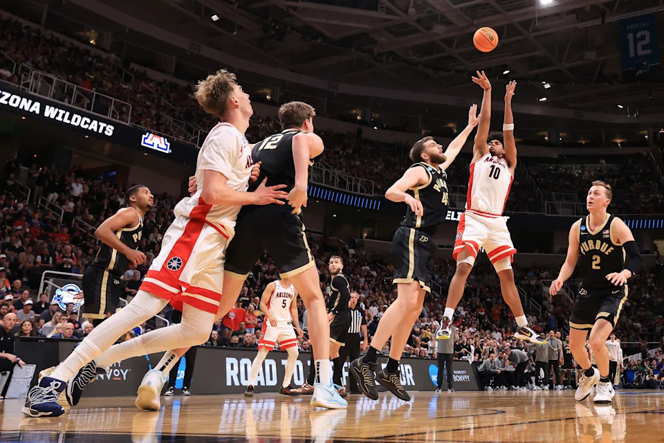Purdue got a halftime lead thanks to seven 3-pointers, but the perimeter was closed in the second half. It missed its next seven attempts, only making one 3-pointer, coming with eight seconds left when Arizona was already celebrating.