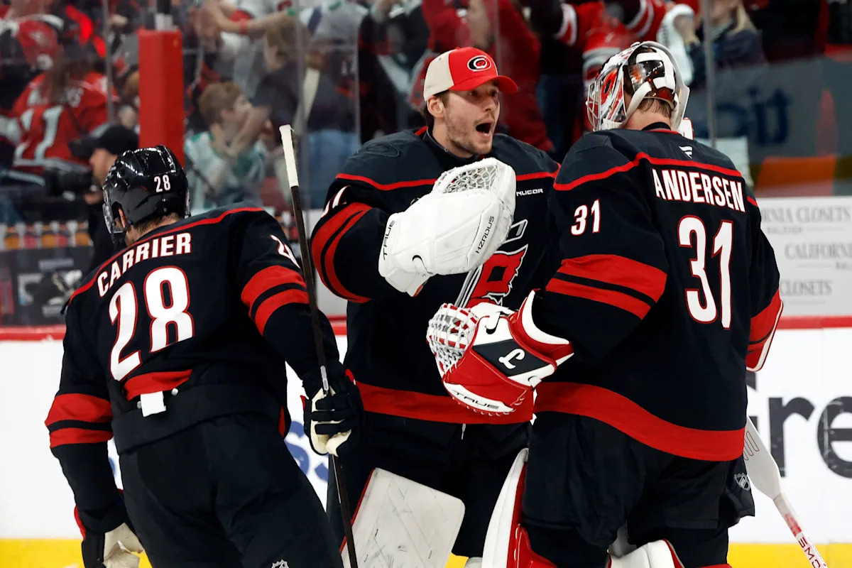 The Hurricanes ultimately came out on top — after the Senators nearly got their own sudden-death winner in the second overtime when Michael Amadio got an in-close shot. Frederik Andersen made the stop with his glove to deflect the puck, which kept rising and hit the crossbar before bouncing away.