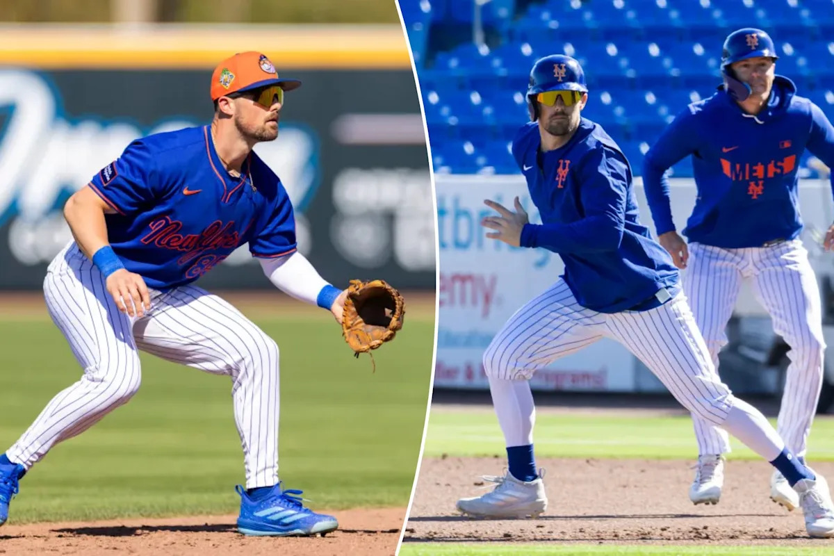 New York Mets infielder Jackson Cluff (l.) runs the bases during Spring Training at Clover Field, Tuesday, Feb. 24, 2026, in Port St. Lucie. Corey Sipkin for the NY POST