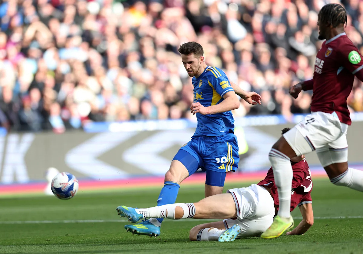 Stach, a former standout with Hoffenheim and Mainz, was gifted a chance to double Leeds’ advantage in the 33rd minute when he marauded into the Hammers’ box, only to be clipped by Max Kilman just after getting his shot away, with shouts for a penalty being waved away.