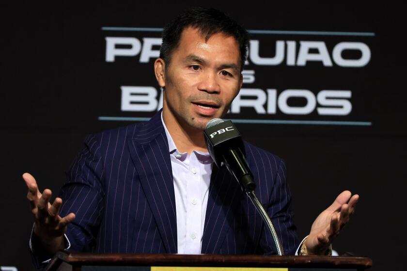 And court battles continue. The latest salvo was a filing by Pacquiao this week in Los Angeles Superior Court accusing respected law firms and their restaurant server client of attempting to extort millions of dollars from the boxer by fabricating a verbal agreement and falsely accusing him of texting photos of dismembered bodies in a “terror campaign.”
