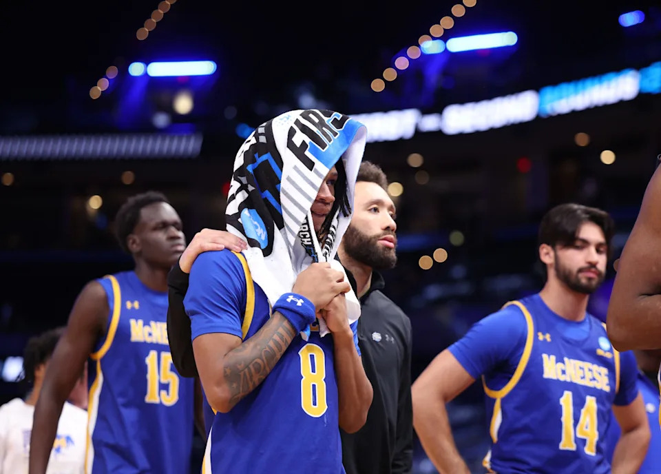 McNeese Cowboys guard Tyshawn Archie (8) walks off the court after losing to the Vanderbilt Commodores during a first round game of the men’s 2026 NCAA Tournament at Paycom Centeron March 19, 2026 in Oklahoma City.