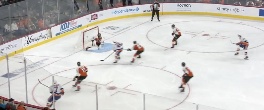 After an on-the-money backhand pass from Simon Holmstrom to spring Maxim Tsyplakov over the Flyers blue line, No. 7 hit Shabanov right on the tape, before he quickly redirected the shot over Flyers netminder Sam Ersson’s blocker for the goal.