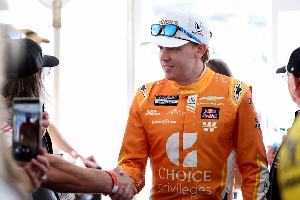 MARTINSVILLE, VIRGINIA – MARCH 29: Connor Zilisch, driver of the #88 Choice Privileges Chevrolet, greets NASCAR fans during the drivers meeting prior to the NASCAR Cup Series Cook Out 400 at Martinsville Speedway on March 29, 2026 in Martinsville, Virginia. (Photo by David Jensen/Getty Images)