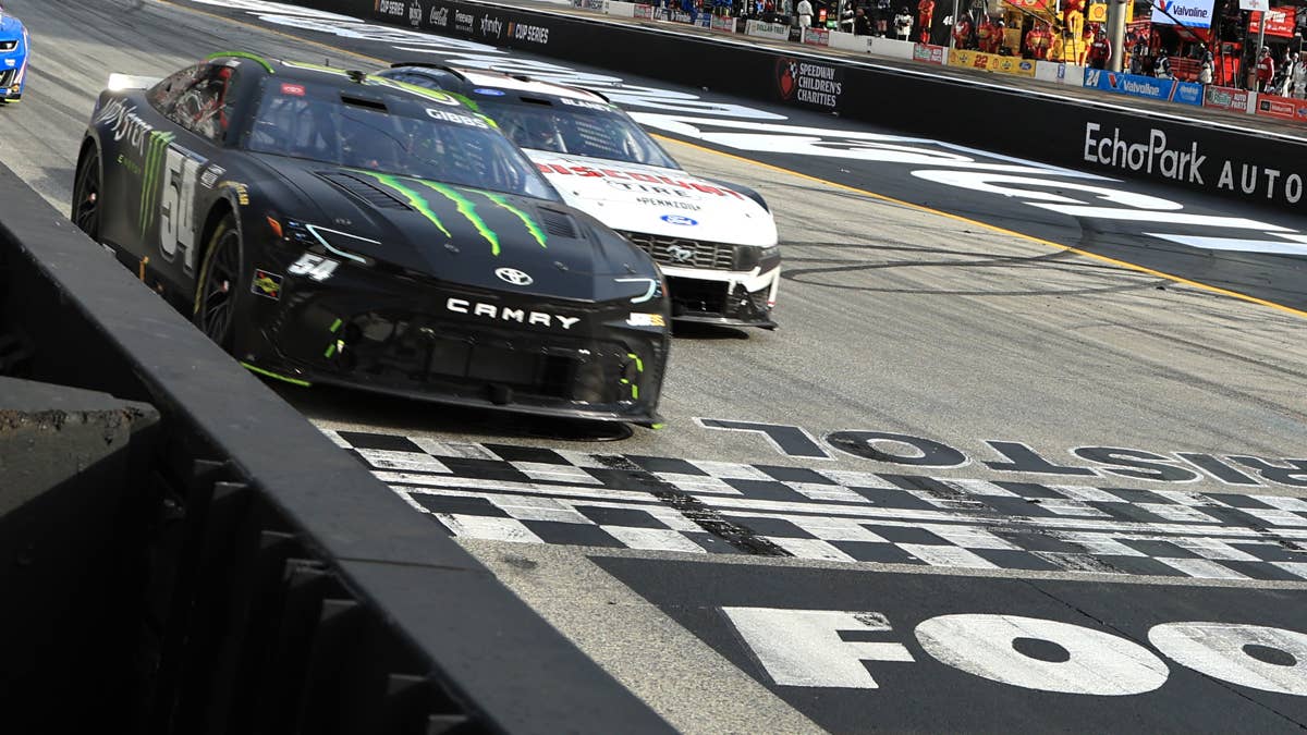 Gibbs had to take down two Cup champions to get the job done in overtime. He did it on old tires, too. Gibbs was able to get away from Larson and Ryan Blaney on his way to the victory.