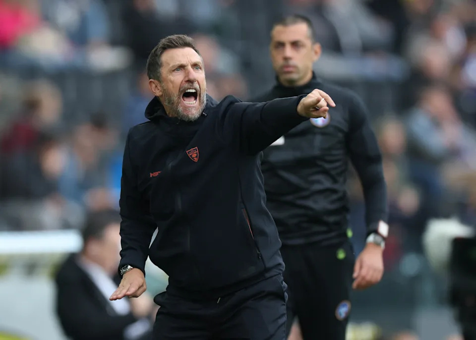 UDINE, ITALY – OCTOBER 25: Eusebio Di Francesco, manager of US Lecce, reacts during the Serie A match between Udinese Calcio and US Lecce at Stadio Friuli on October 25, 2025 in Udine, Italy. (Photo by Timothy Rogers/Getty Images)