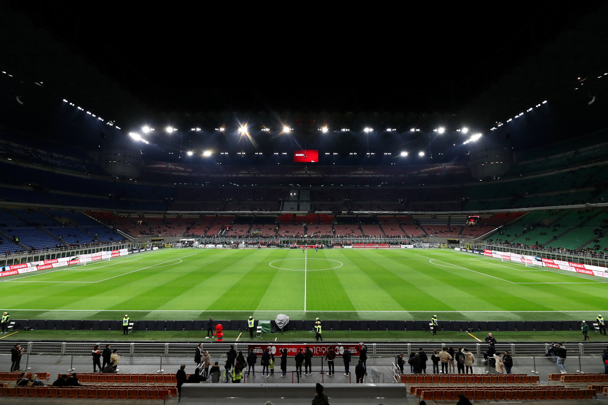 MILAN, ITALY – MARCH 02: General view inside the stadium prior to the Serie A match between AC Milan and SS Lazio at Stadio Giuseppe Meazza on March 02, 2025 in Milan, Italy. (Photo by Marco Luzzani/Getty Images)