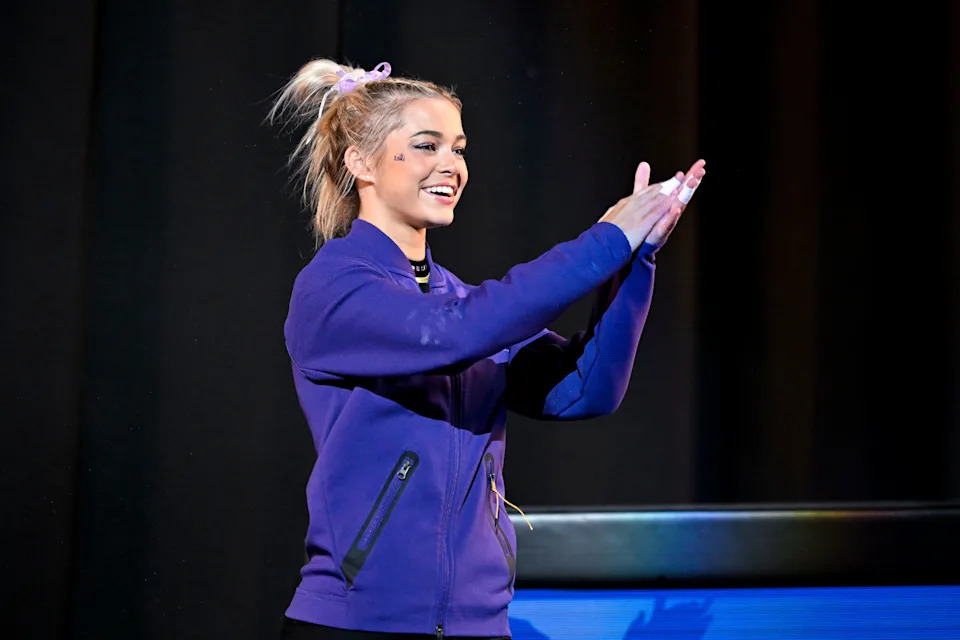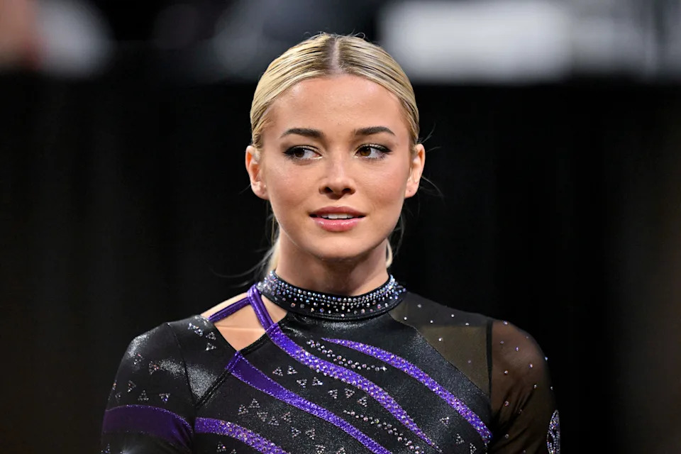 Livvy Dunne looks on during the 2025 NCAA women’s semifinals.