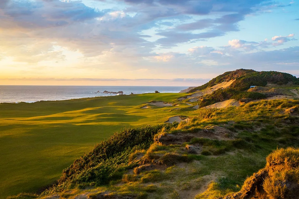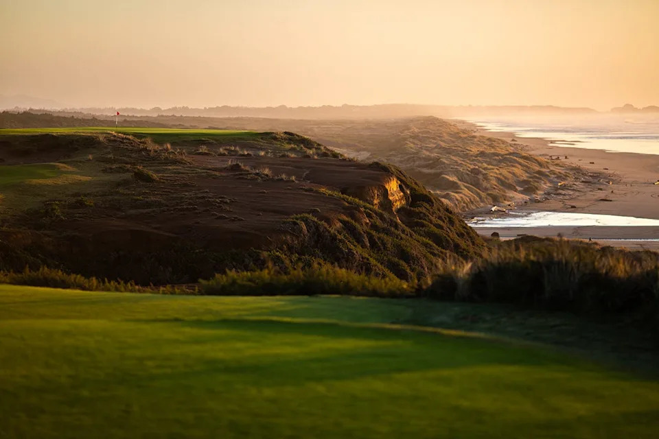 Pacific Dunes’ back nine begins with a rarity for championship golf, then dives into a delectably eccentric mix of holes, pars, lengths and landscapes. No. 10 is a downhill par-3 playing toward the ocean, a hole that would be the scene-stealer at all but a handful of other courses in the world. It’s followed with another par 3 that’s even better: the tiny, spread-my-ashes-here 11th nestled into the cliff’s edge. After the wide par-5 12th, the par-4 13th with the ocean all the way down its left and a giant dune to the right makes pulses race again. From there, the course marches back into the inland dunes, always alternating lengths and pars along the trek. In all, the back nine features an unconventional four par 3s with three par 5s and only two par 4s.