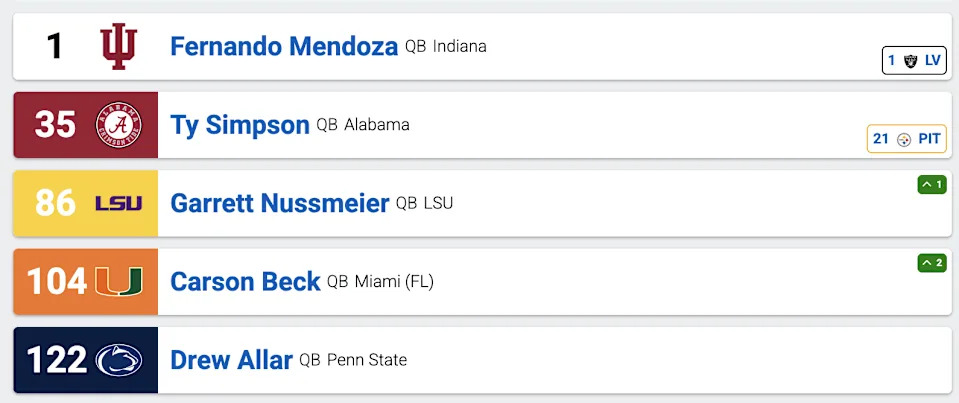 The best quarterback in the 2026 class is Fernando Mendoza, himself a prospect who may actually get a worse overall draft grade than J.J. McCarthy if they had been in the same class, but a foregone conclusion at the #1 pick because the Las Vegas Raiders literally have no other choice. If slapped into a class with Caleb Williams, Daniels, and Drake Maye, Mendoza would be an EASY pick for being no better than QB4.