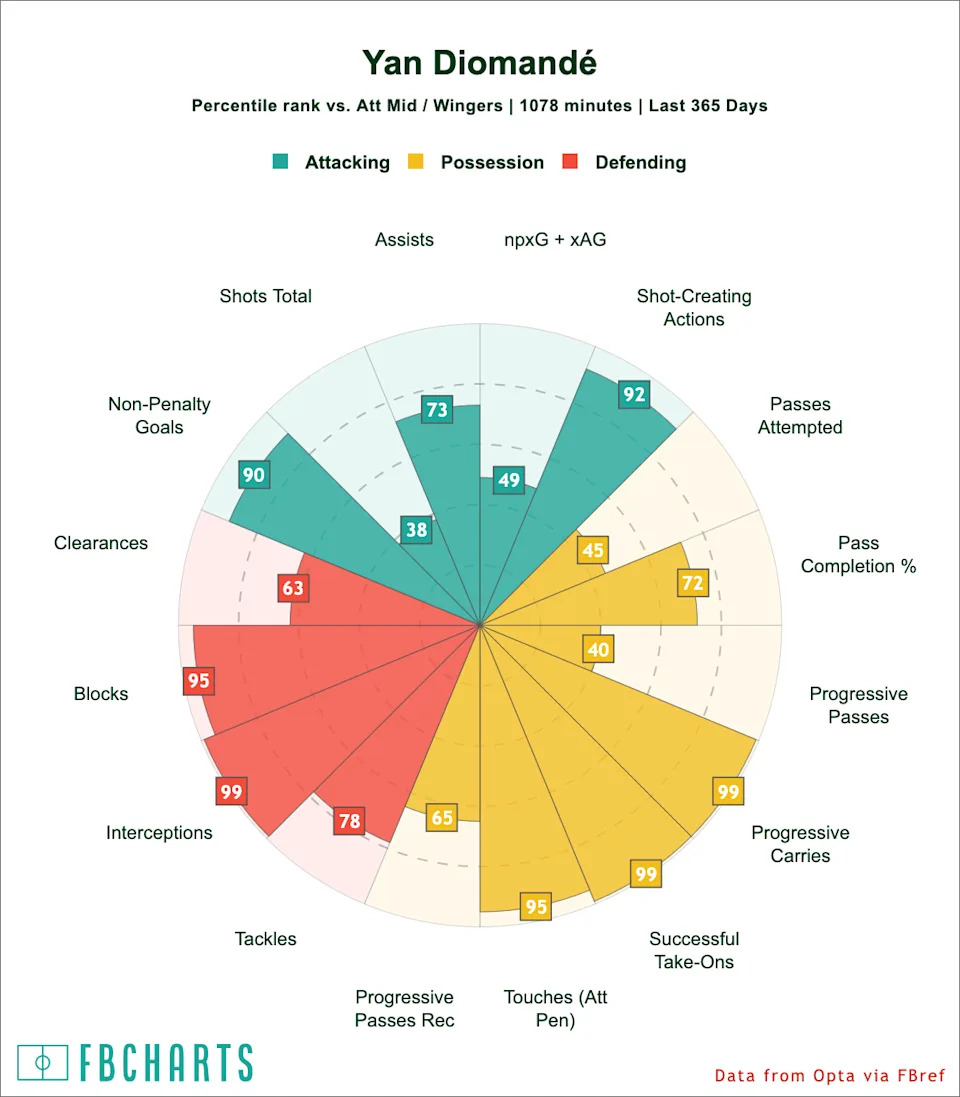 Interest in the young winger is not difficult to understand. Diomande has quickly developed a reputation across Europe as one of the most exciting emerging attackers in the Bundesliga. Despite his relative inexperience at the top level, his production has been eye-catching. This season he has delivered 10 goals and seven assists in 26 appearances, averaging a goal involvement roughly every 110 minutes.