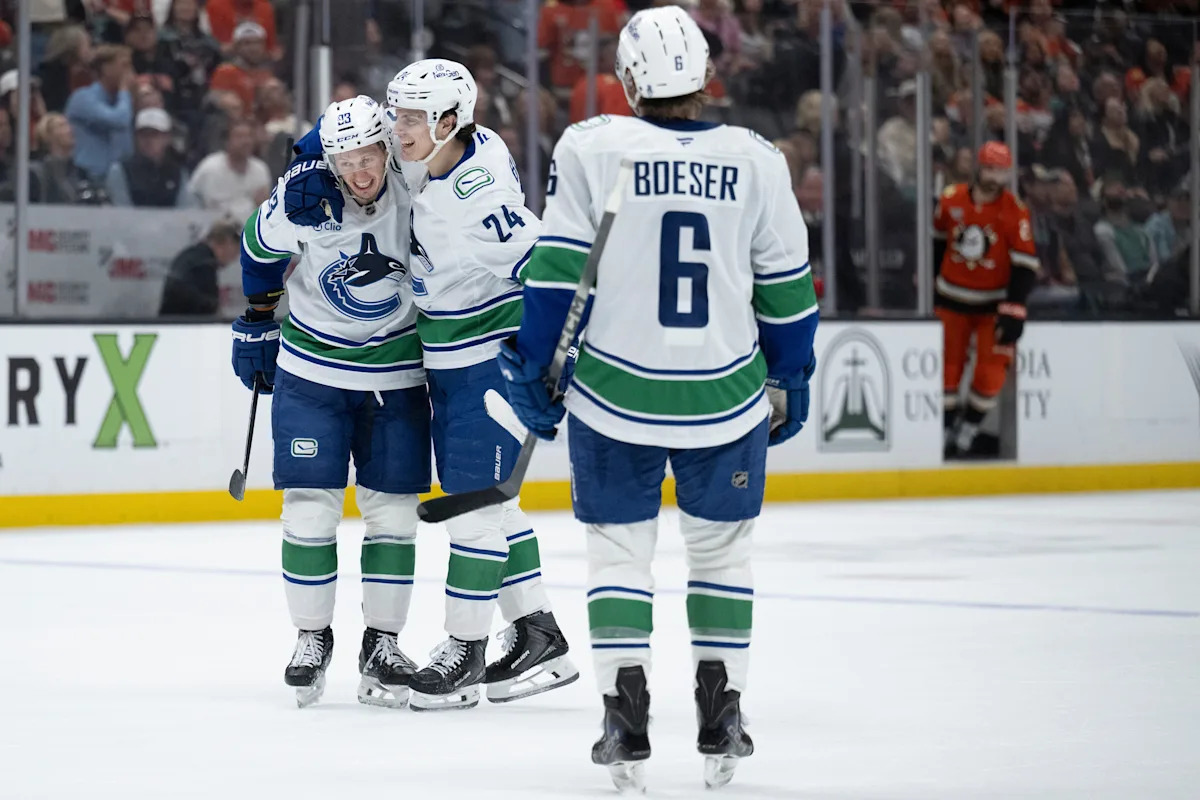 Douglas answered about 10 minutes later and DeBrusk added a power-play goal with 5:23 left until the first intermission that gave Vancouver a 2-1 lead.