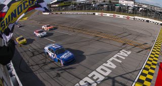 Rookie Brent Crews finished a career-best runner-up in the No. 19 Joe Gibbs Racing Toyota, with Haas Factory Team driver Sheldon Creed scoring third in a typical photo finish-type conclusion on the 2.66-mile Talladega high banks. Creed‘s work was good enough to claim the $100,000 Dash 4 Cash incentive prize for his effort — the second straight week he did so.