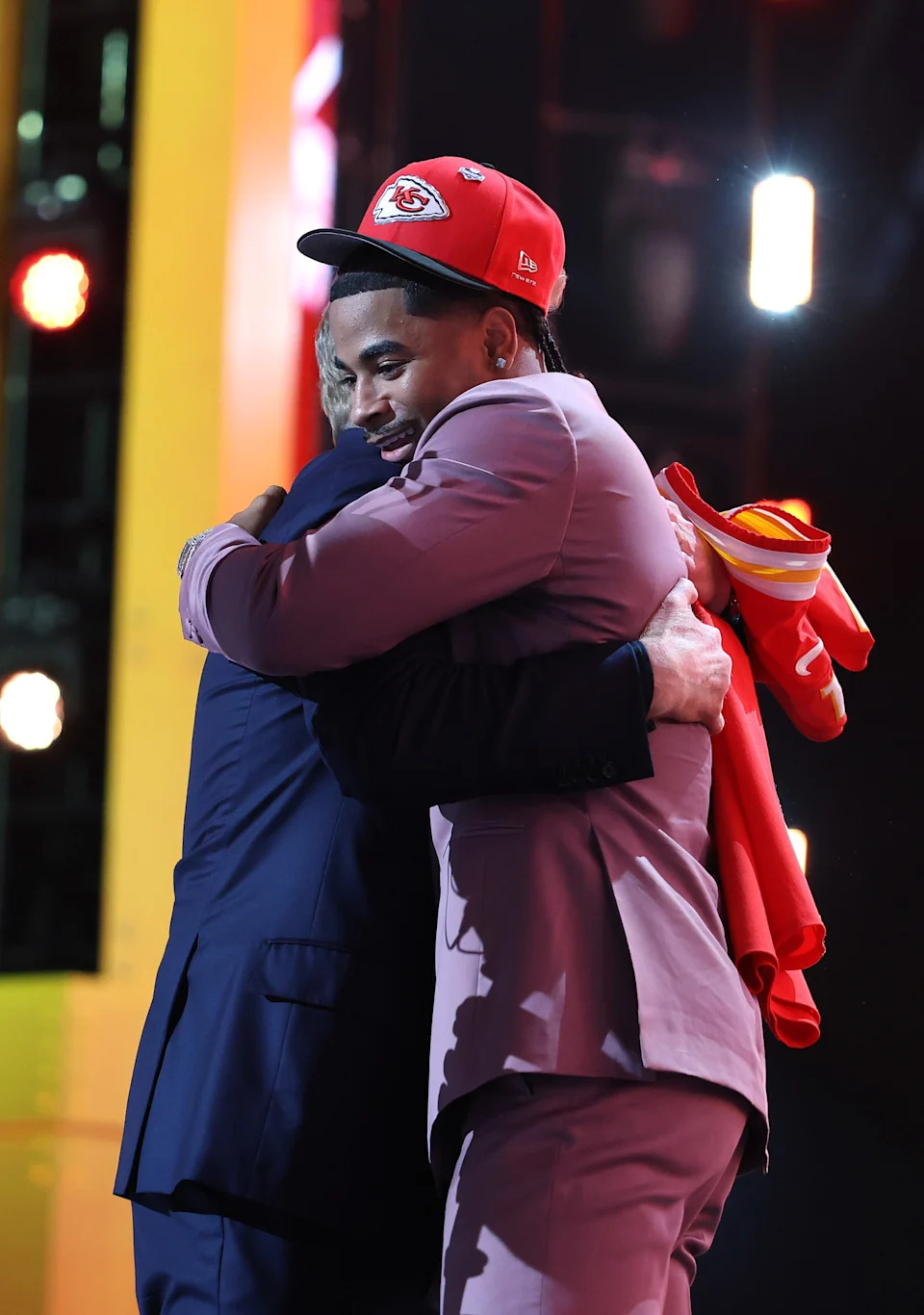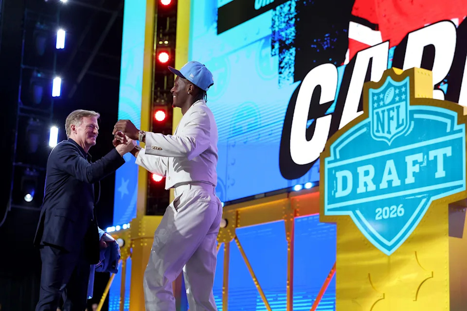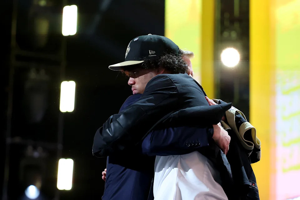 The NFL Draft regularly produces its most memorable moments off the stage, when selections end with a handshake or embrace from the commissioner.