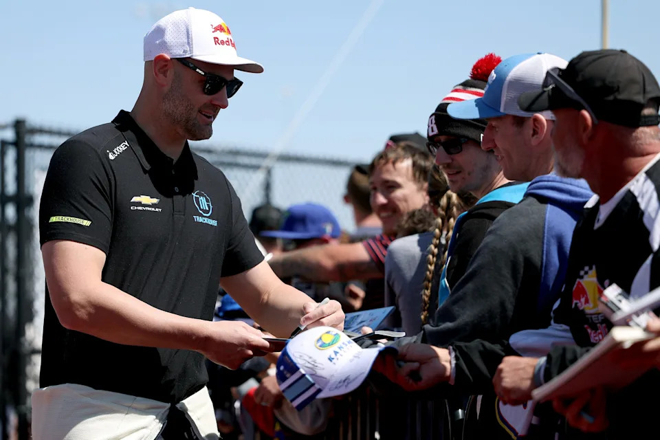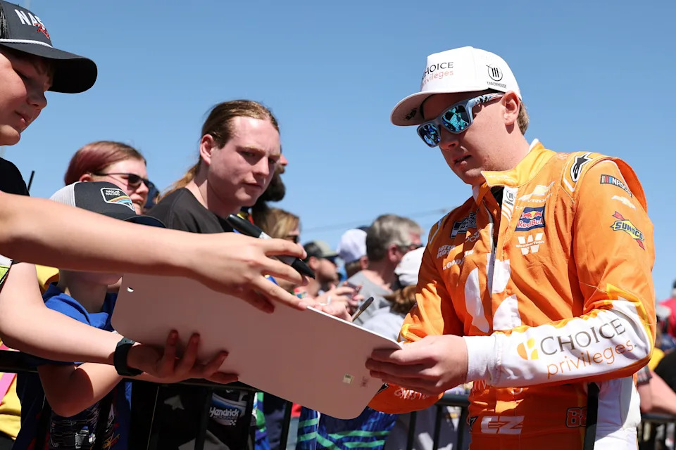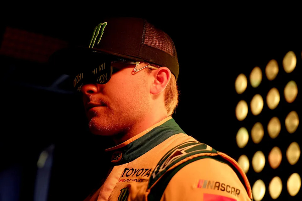 KANSAS CITY, KANSAS – APRIL 19: Tyler Reddick, driver of the #45 Supply House Toyota, enters his car for the NASCAR Cup Series AdventHealth 400 at Kansas Speedway on April 19, 2026 in Kansas City, Kansas. (Photo by David Jensen/Getty Images)