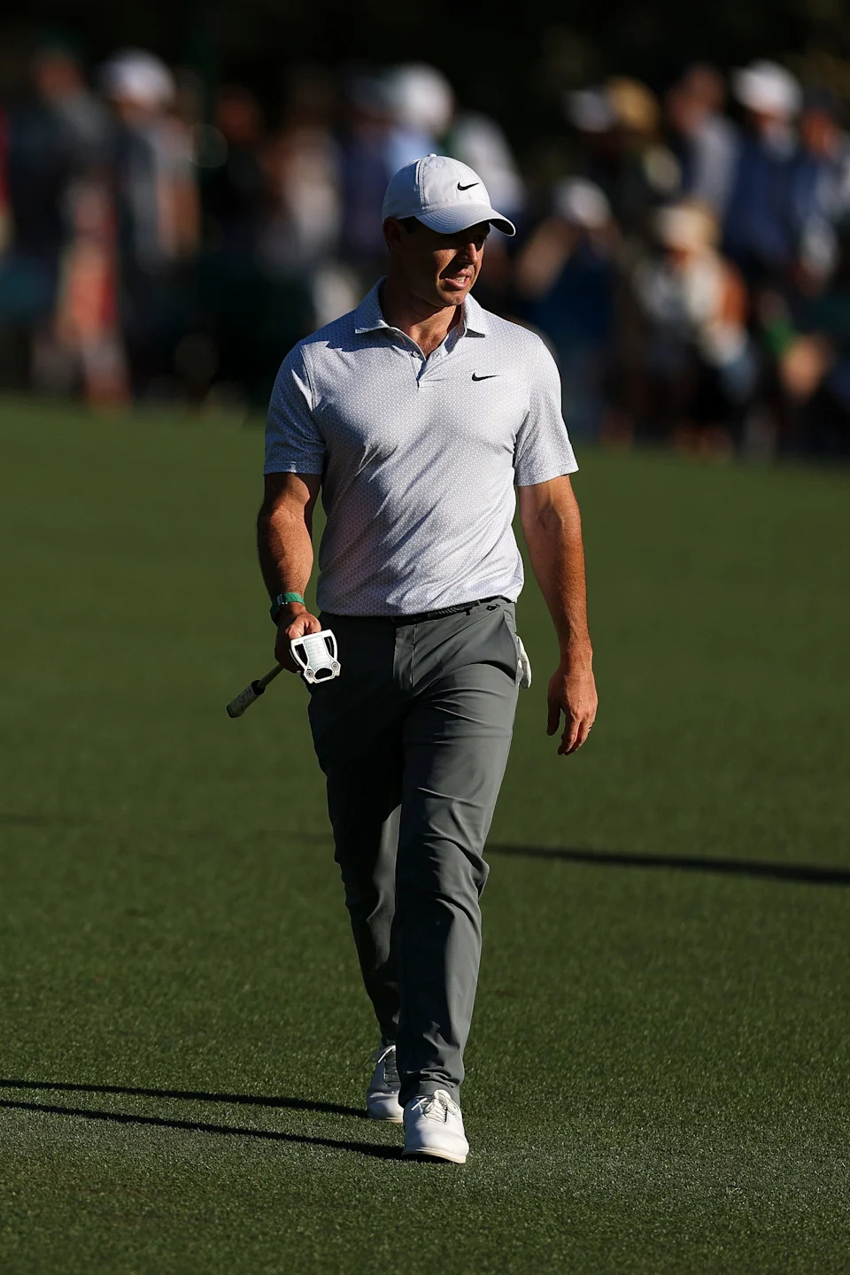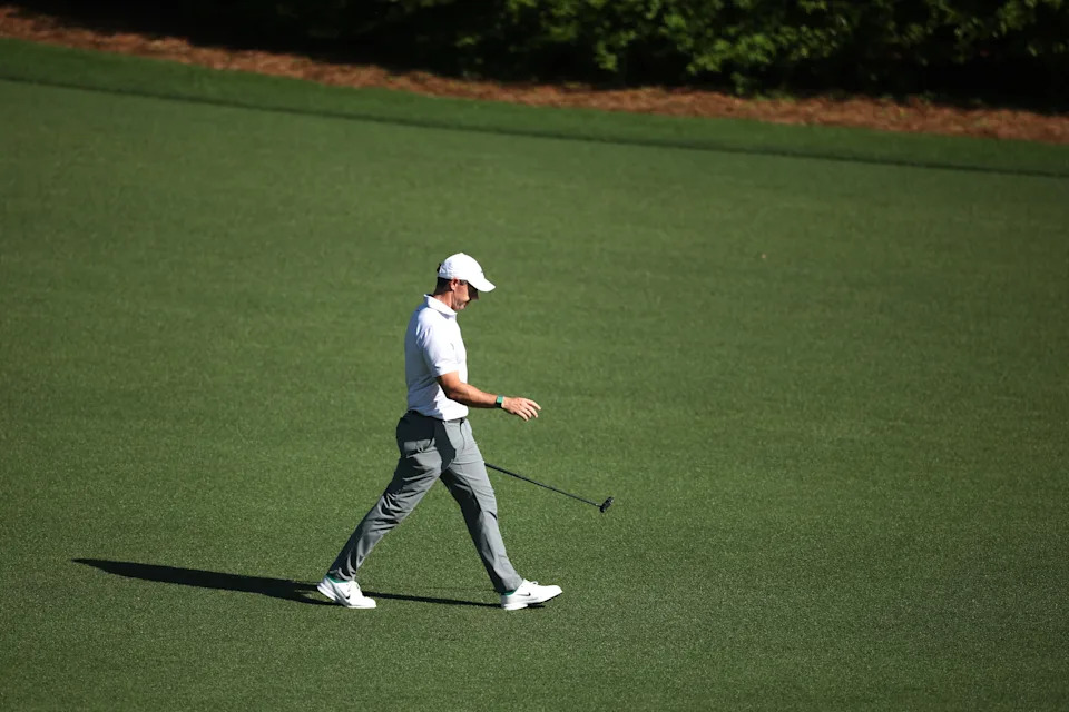 Rory McIlroy of Northern Ireland walks to the 15th green during the second round of the 2026 Masters Tournament at Augusta National Golf Club on April 10, 2026, in Augusta, Georgia.