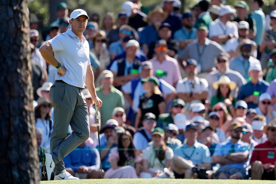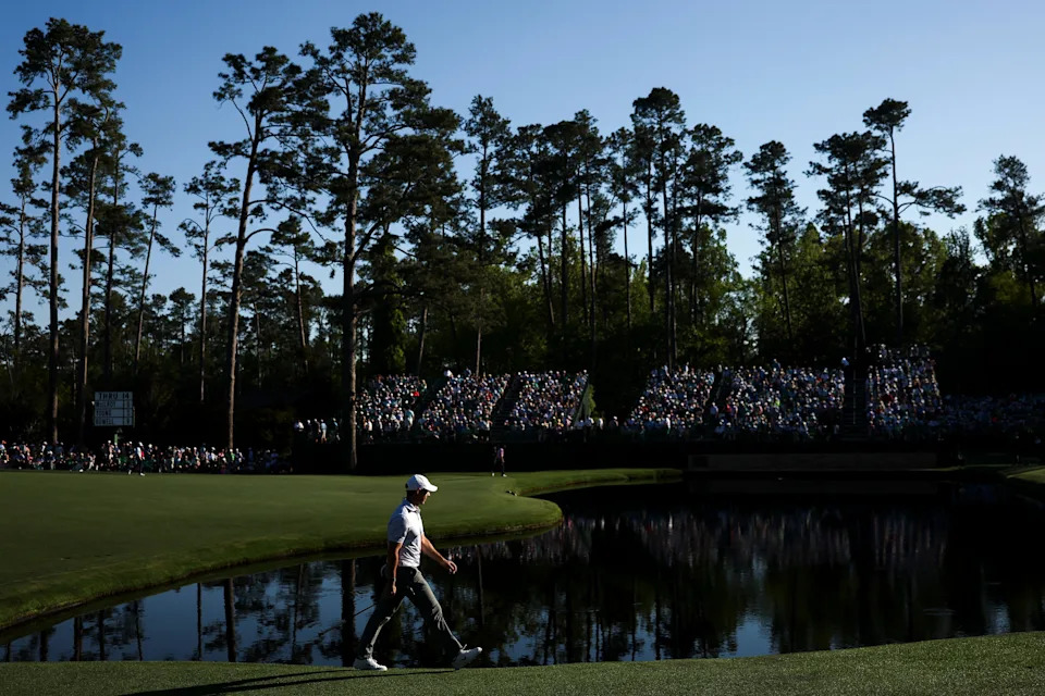 Rory McIlroy looks on from the sixteenth green during the second round of the Masters Tournament at Augusta National Golf Club.